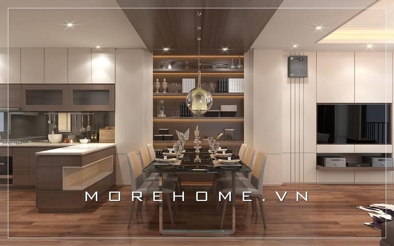Thiết kế nội thất gỗ công nghiệp đơn giản hiện đại cho phòng ăn chung cư biệt thự