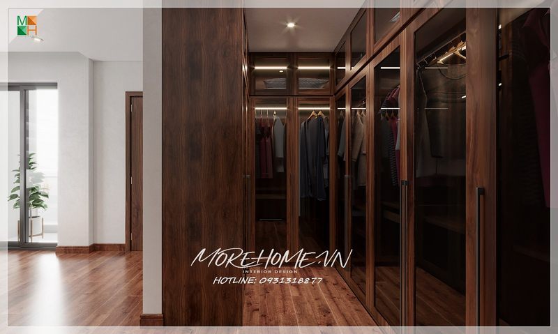 Thiết kế nội thất phòng thay đồ rất hiện đại và sang trọng phù hợp cho các nhà chung cư, nhà phố, biệt thự.