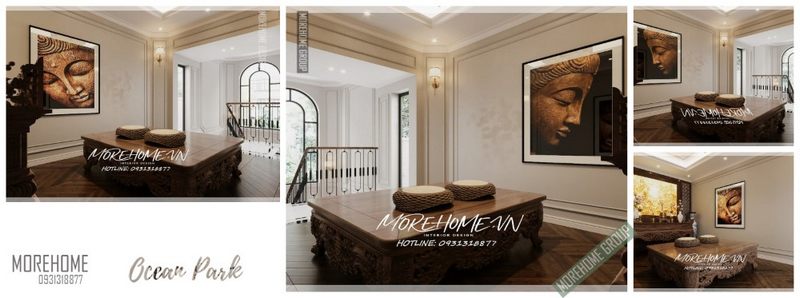 Thiết phòng thờ linh thiêng cho biệt thự Ocen Park sang trọng mang đến tính linh thiêng. Đây là nơi tưởng nhớ đến những người đã quá cố trong gia đình.