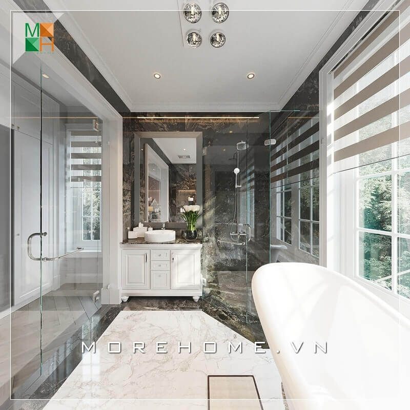 Mẫu thiết kế nhà tắm đầy đủ tiện nghi, bao gồm phòng tắm kính cường lực cao cấp, đã được hiển thị.