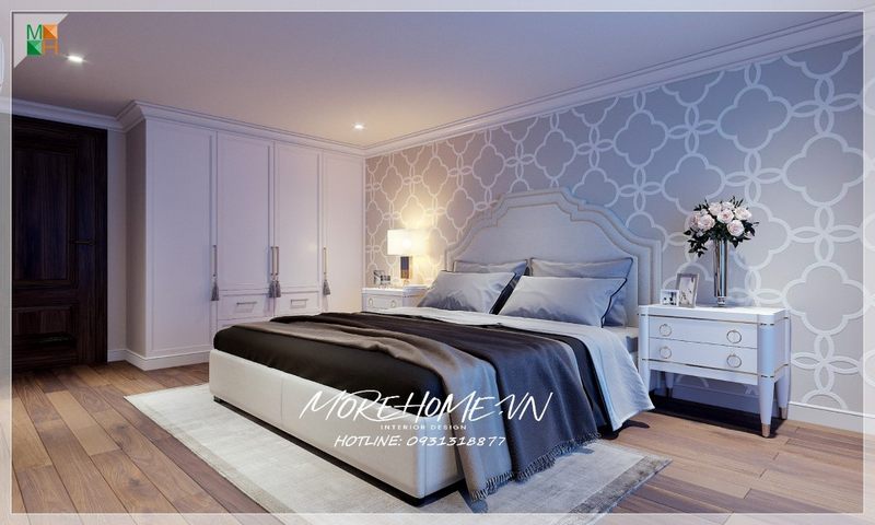 Tab đầu giường cổ điển trắng tự nhiên mang lại sự sang trọng và thẩm mỹ cao cho không gian.