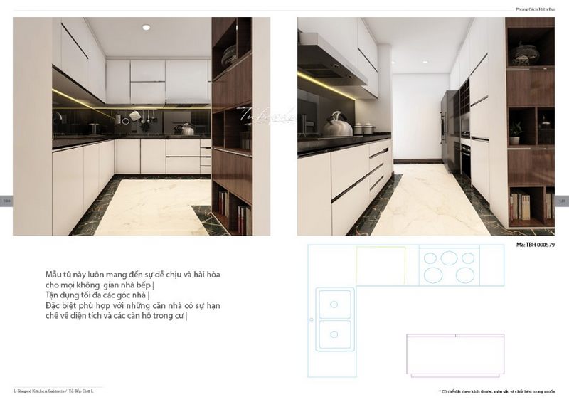 Mẫu tủ bếp đẹp và hiện đại sẽ làm nên sự khác biệt cho không gian bếp của căn hộ chung cư.