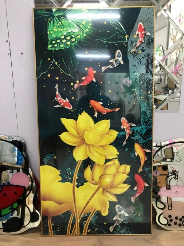 Món quà tốt nhất là tranh Canvas phong thủy có hình ảnh cá chép và sen vàng.